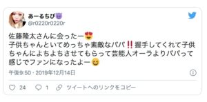 また、佐藤さんは、子供ができてからはプライベートの時間をすべて家族につかうようになったと話していたことがあります。